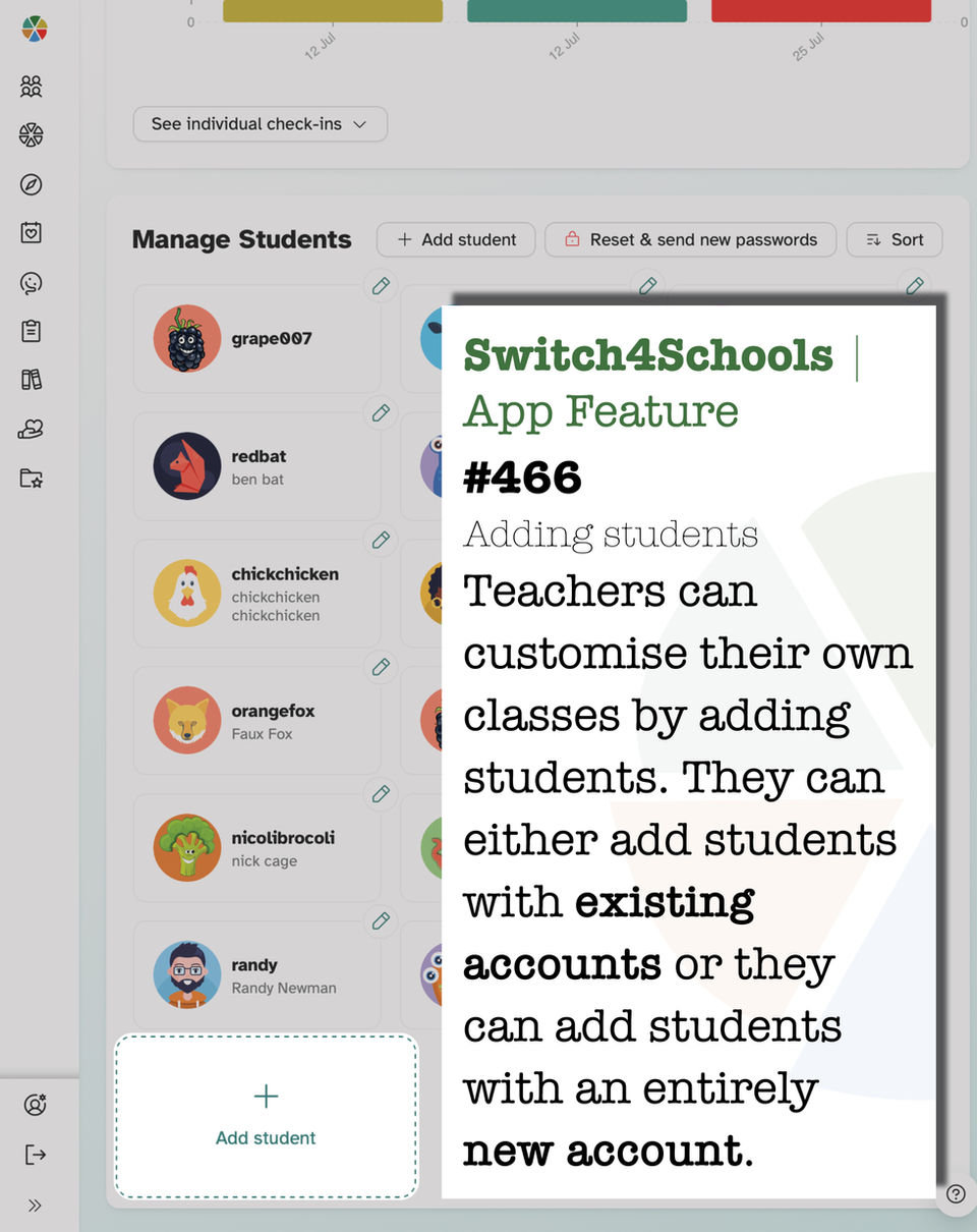 Swapping between your admin account to manage classes and accounts, and your teacher account to access teaching resources and student data. OPEN HERE